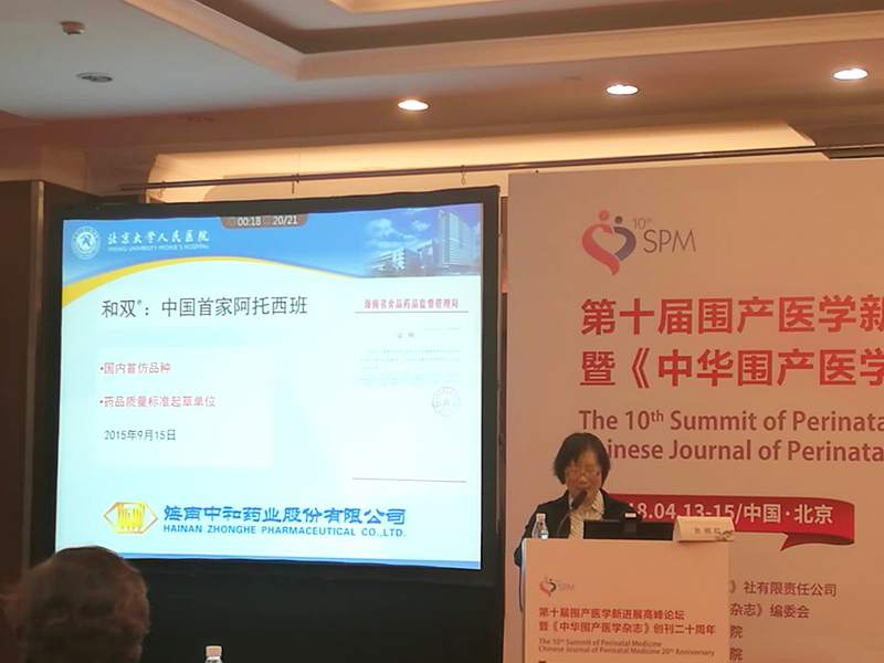 海南中和藥業(yè)股份有限公司攜重磅產(chǎn)品“和雙?醋酸阿托西班注射液”亮相本次會(huì)議,獲得全國圍產(chǎn)醫(yī)生的廣泛關(guān)注。并特邀北京大學(xué)第一醫(yī)院時(shí)春艷教授主持,由北京大學(xué)人民醫(yī)院張曉紅教授主講專題講座《早產(chǎn)的宮縮抑制劑臨床應(yīng)用》。張教授先從早產(chǎn)的流行病學(xué)開始切入主題,WHO指南及中國的早產(chǎn)指南2014版列入的宮縮抑制劑主要有:①選擇性宮縮抑制劑:和雙?阿托西班;②β2腎上腺素受體興奮劑:利托君;③鈣通道阻滯劑:硝苯地平;④前列腺素合成酶抑制劑 :吲哚美辛;硫酸鎂只作為32周前的神經(jīng)保護(hù)劑使用。張教授認(rèn)為在維持/重復(fù)應(yīng)用宮縮抑制劑中,和雙?醋酸阿托西班注射液對(duì)改善結(jié)局有顯著性差異。利托君/硝苯地平與安慰劑組對(duì)比,無顯著性差異。和雙?醋酸阿托西班注射液安全性好,應(yīng)為宮縮抑制劑的最佳選擇。