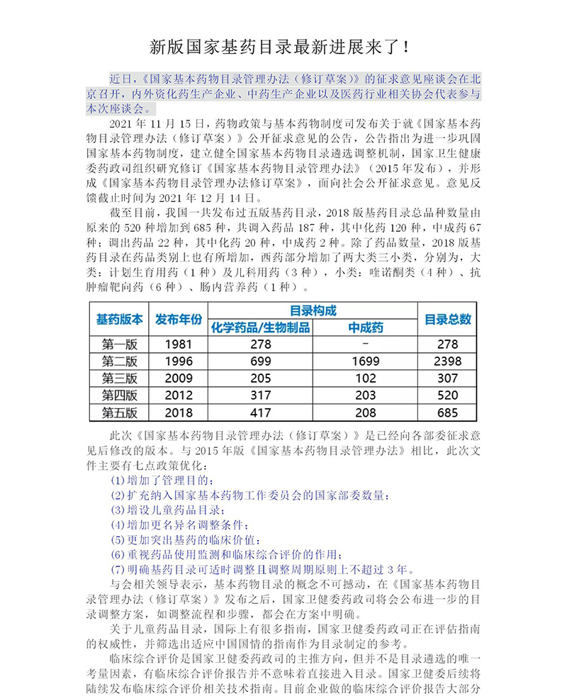 新版國家基藥目錄最新進展來了
