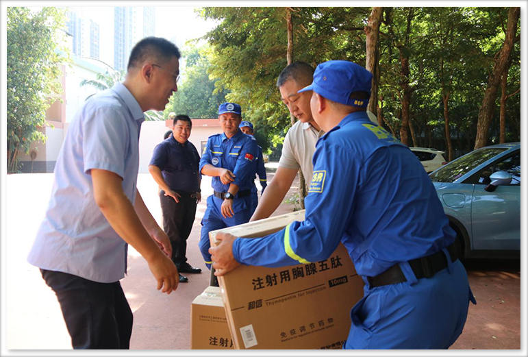 8月9日上午,為了助力公益救援事業(yè),守護(hù)藍(lán)天救援團(tuán)隊(duì)的健康,海南中和藥業(yè)股份有限公司向海口市藍(lán)天救援隊(duì)捐贈一批免疫調(diào)節(jié)藥物和信-注射用胸腺五肽,并在公司舉行了捐贈儀式。