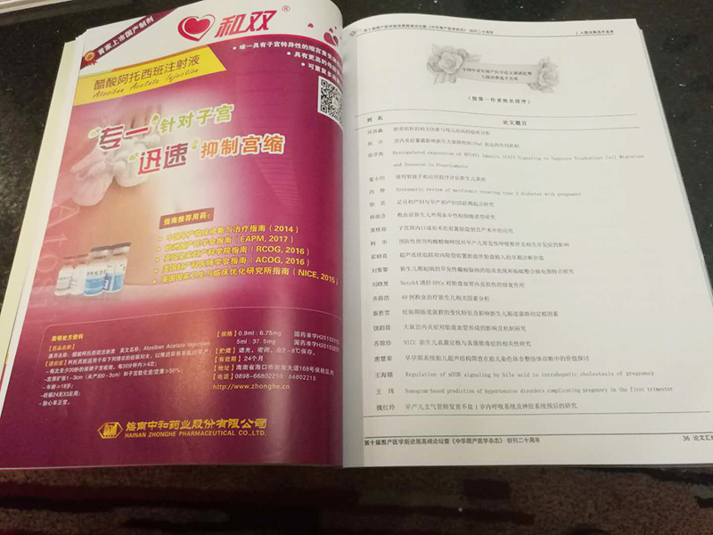 海南中和藥業(yè)股份有限公司攜重磅產(chǎn)品“和雙?醋酸阿托西班注射液”亮相本次會(huì)議,獲得全國圍產(chǎn)醫(yī)生的廣泛關(guān)注。并特邀北京大學(xué)第一醫(yī)院時(shí)春艷教授主持,由北京大學(xué)人民醫(yī)院張曉紅教授主講專題講座《早產(chǎn)的宮縮抑制劑臨床應(yīng)用》。張教授先從早產(chǎn)的流行病學(xué)開始切入主題,WHO指南及中國的早產(chǎn)指南2014版列入的宮縮抑制劑主要有:①選擇性宮縮抑制劑:和雙?阿托西班;②β2腎上腺素受體興奮劑:利托君;③鈣通道阻滯劑:硝苯地平;④前列腺素合成酶抑制劑 :吲哚美辛;硫酸鎂只作為32周前的神經(jīng)保護(hù)劑使用。張教授認(rèn)為在維持/重復(fù)應(yīng)用宮縮抑制劑中,和雙?醋酸阿托西班注射液對(duì)改善結(jié)局有顯著性差異。利托君/硝苯地平與安慰劑組對(duì)比,無顯著性差異。和雙?醋酸阿托西班注射液安全性好,應(yīng)為宮縮抑制劑的最佳選擇。