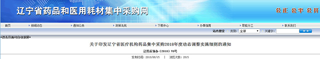 動態(tài)調整方式:對截至到2018年8月14曰通過國家仿制藥質量和療效一致性評價的藥品 (以國家藥品監(jiān)督管理局公告為準)和國家談判藥品的仿制藥、已在遼寧省藥品和醫(yī)用耗材集中采購平臺掛網(wǎng)采購的藥品, 實行參考價掛網(wǎng)采購。