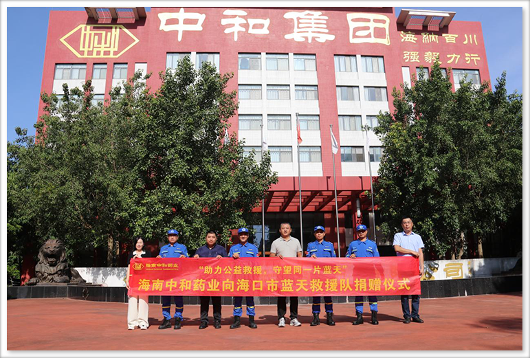8月9日上午,為了助力公益救援事業(yè),守護(hù)藍(lán)天救援團(tuán)隊(duì)的健康,海南中和藥業(yè)股份有限公司向海口市藍(lán)天救援隊(duì)捐贈一批免疫調(diào)節(jié)藥物和信-注射用胸腺五肽,并在公司舉行了捐贈儀式。