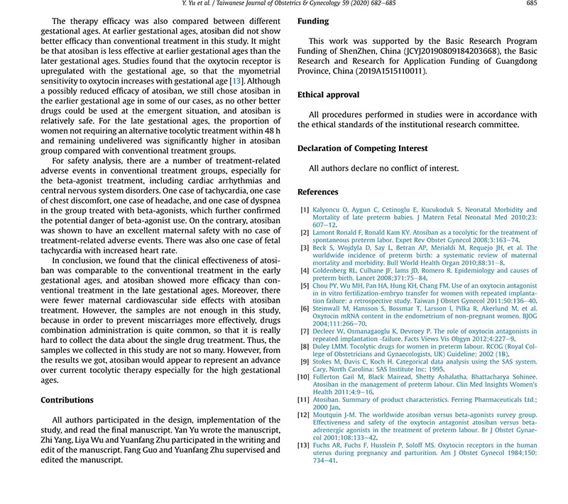 結(jié)論:我們的研究結(jié)果支持阿托西班對比目前常規(guī)治療是更為先進(jìn)的宮縮抑制劑,尤其是對于高孕齡者。